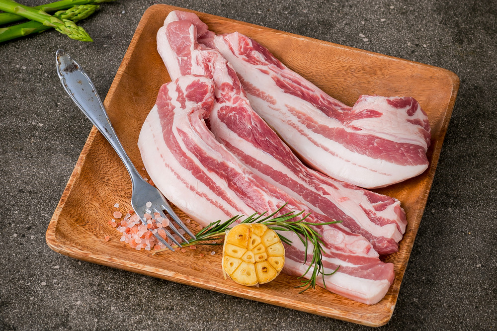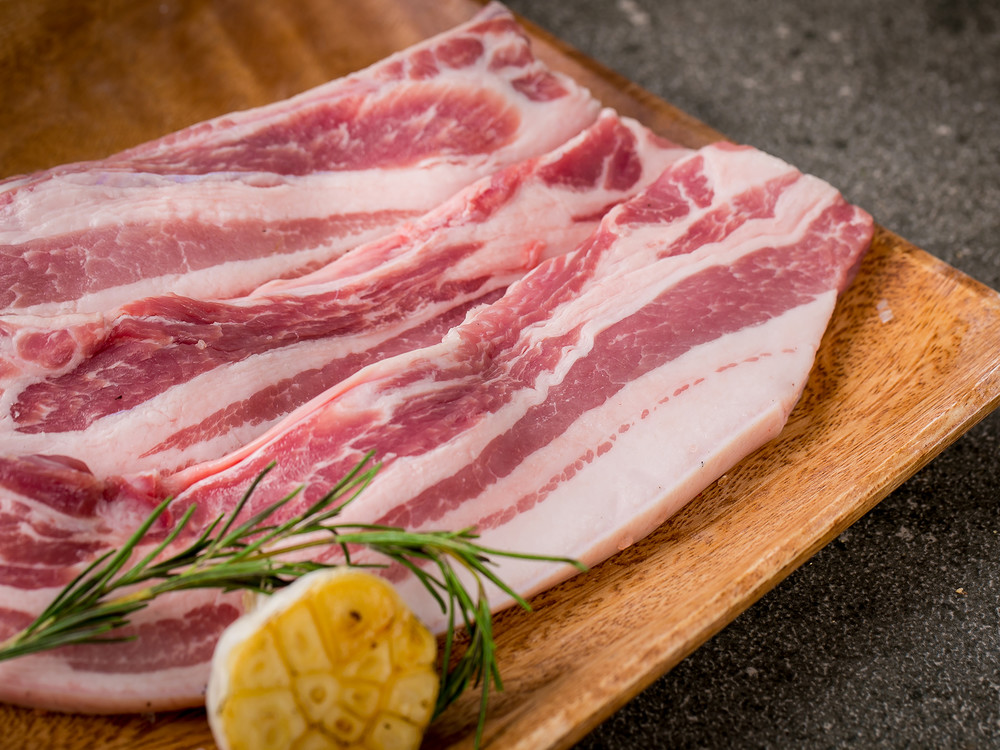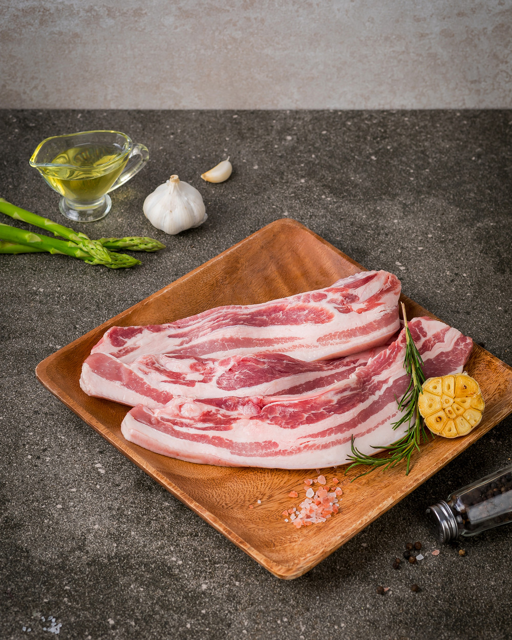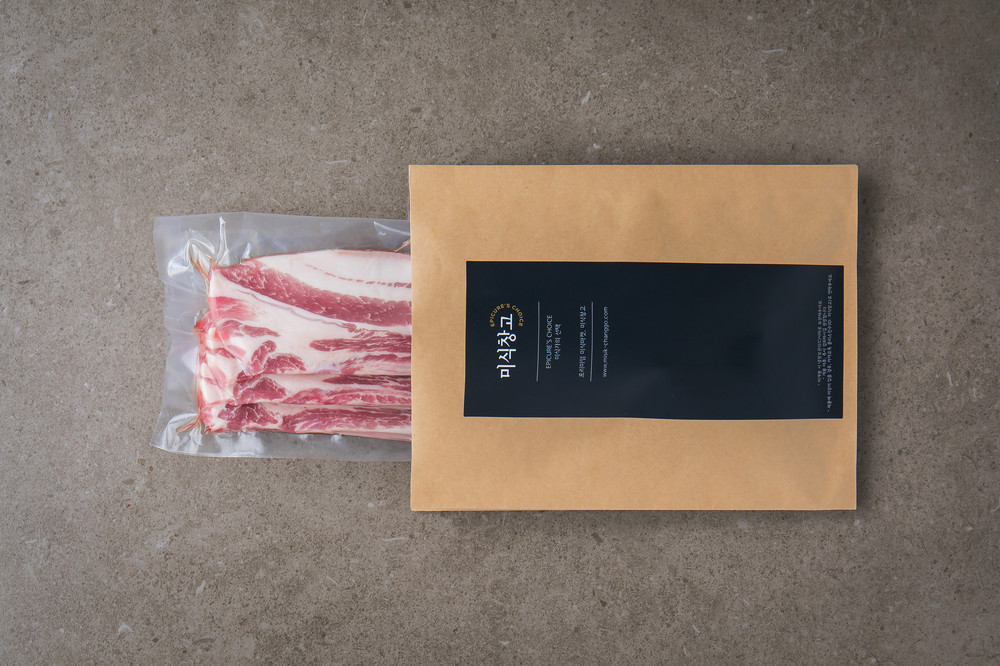 · 씹는 맛과 고소한 육즙이 최대한 느껴지도록 1.5cm 두께로 두툼하게 썰어내었다. 캠핑용, 바베큐용 고기로도 추천!