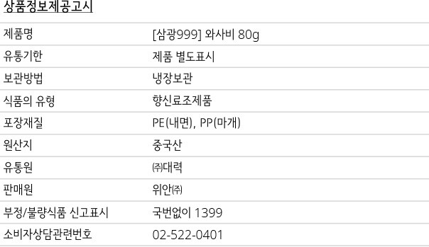 [삼광999] 와사비 80g