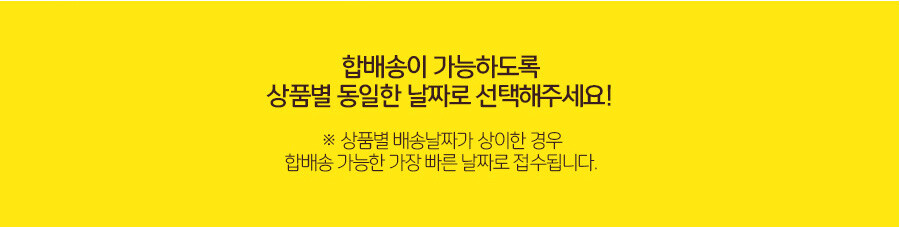 ▶ 당일발송 : [원하는 배송일] 옵션에서 당일발송 선택해서 주문! ※오후4시전 주문시 오늘발송, 내일도착 (평일기준/공휴일제외)