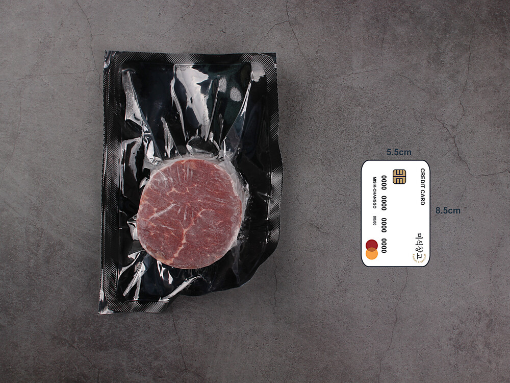 ✔ 200g 중량 안심 스테이크 입니다. 가지고 계신 신용카드나 체크카드 기준으로 크기를 비교해보세요!
