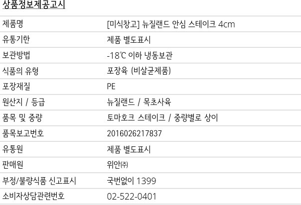 [미식창고] 뉴질랜드 안심 스테이크 4cm