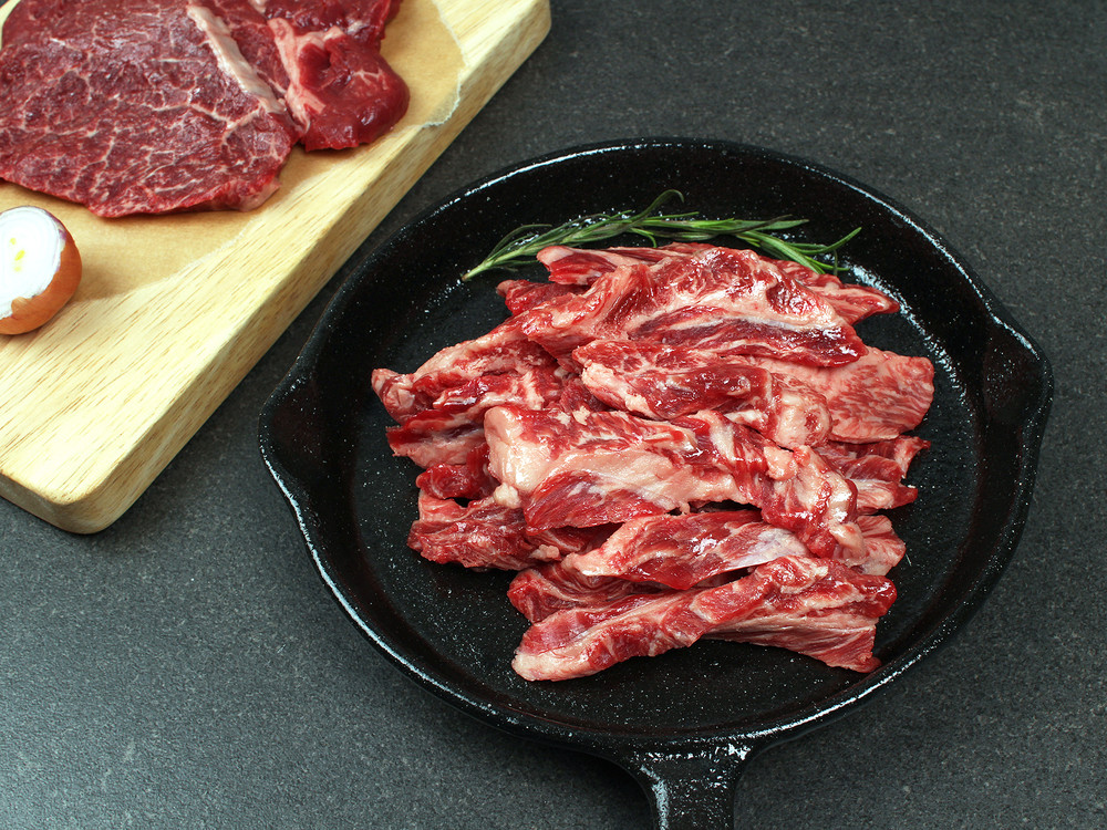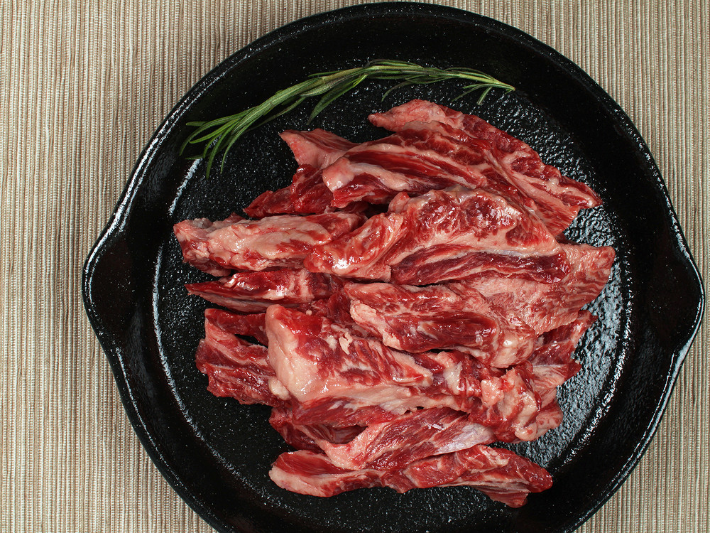 갈비살은 갈비뼈 사이사이에 있는 살코기만 분리한 것이기 때문에 손가락처럼 길고 두툼한 모양을 가지고 있습니다. 갈비뼈를 모두 제거하고나면 얻어지는 살코기의 생산량은 많지 않아 귀한 부위로 취급되기도 합니다. 고깃집에서 구워먹던 그 갈비살을 집에서도 편하게 드실 수 있게 구이용 갈비살을 선보여드리니 뛰어난 마블링과 풍부한 육즙을 마음껏 즐겨보세요!