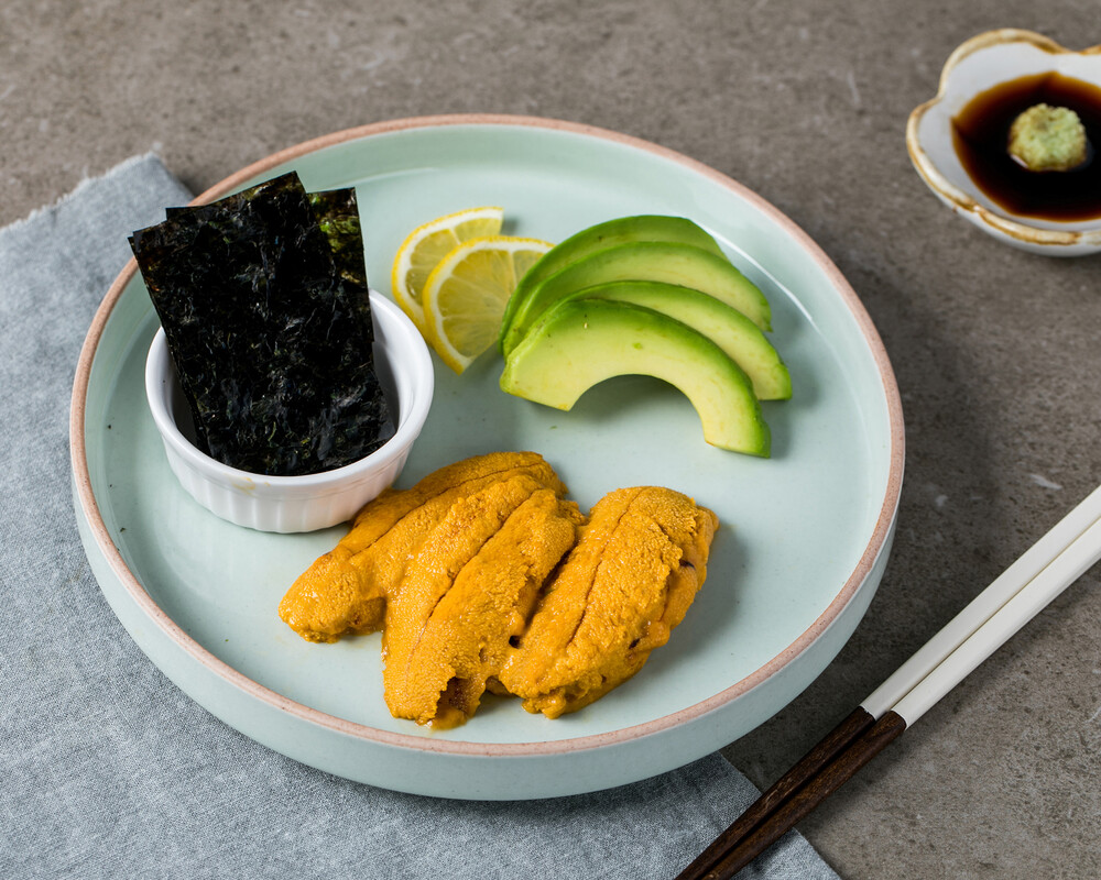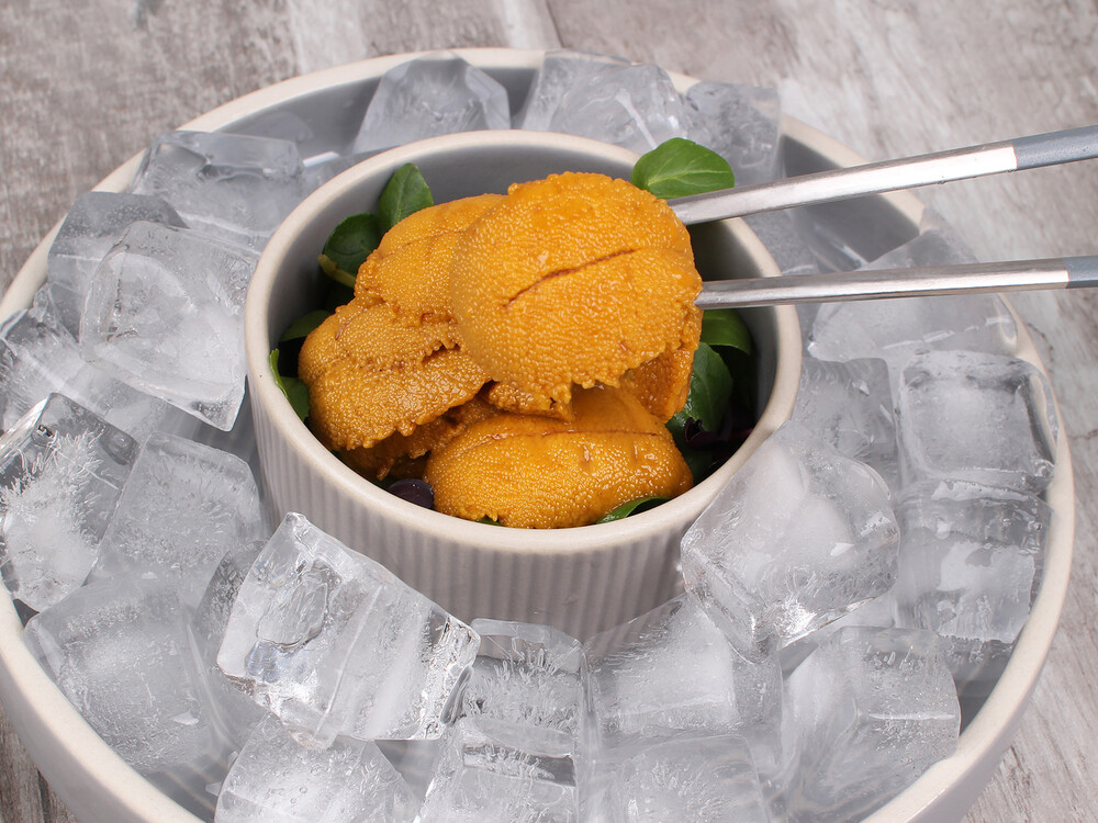 제철에만 만나볼 수 있는 생(生) 성게알은 우선 처음 한 입은 성게알만 입안에 넣어 그 본연의 맛을 느껴보시길 바랍니다. 그 다음에 약간의 소금을 성게알 위에 솔솔 뿌려 드셔보세요. 소금의 염도가 성게알의 달큰한 맛을 끌어올려 더욱 향긋해집니다.