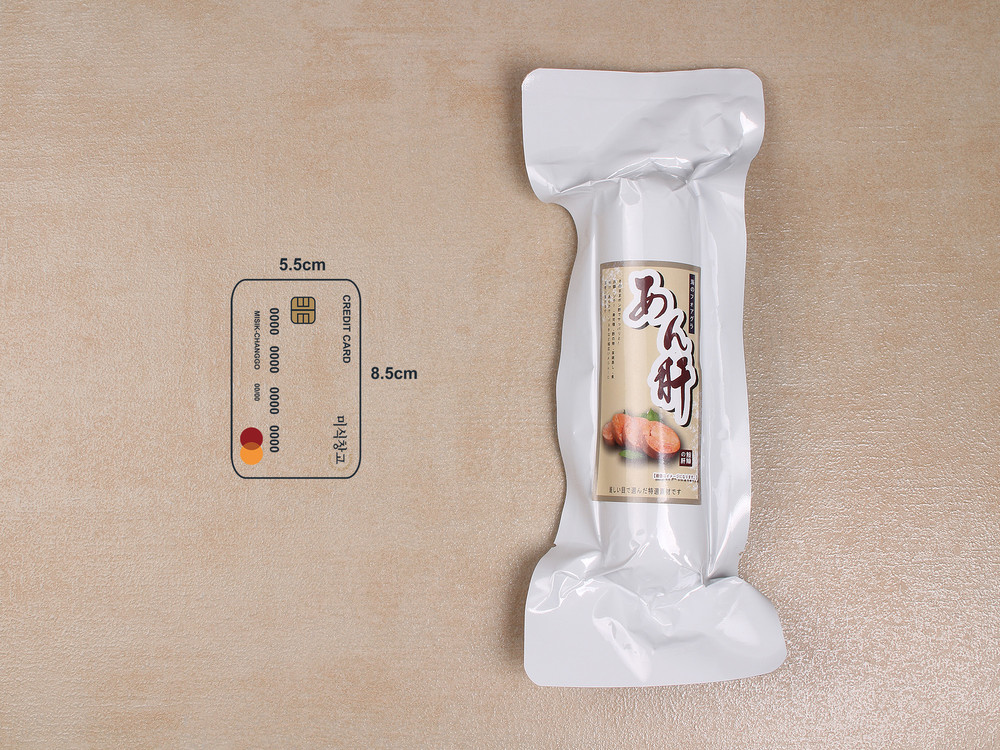 미식창고에서 보내드리는 홈자카야 안키모(아귀간) 은 200g씩 포장되어 전달해드립니다. 가지고 계신 신용카드나 체크카드 기준으로 크기를 비교해보세요.