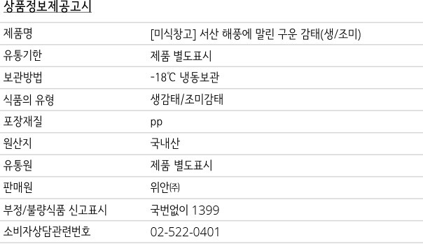제품 수령 후 냉장 또는 냉동 보관 하시기 바랍니다. 개봉 후 실온에 오랜시간 둘 경우 눅눅해지고 향이 날아갈 수 있으므로, 드시기 직전에 꺼내어 드실 만큼만 소분하여 드시는 것이 좋습니다. 드시다가 남은 감태는 지퍼백 등에 밀봉하여 냉동 보관하시는 것을 권장해드립니다.