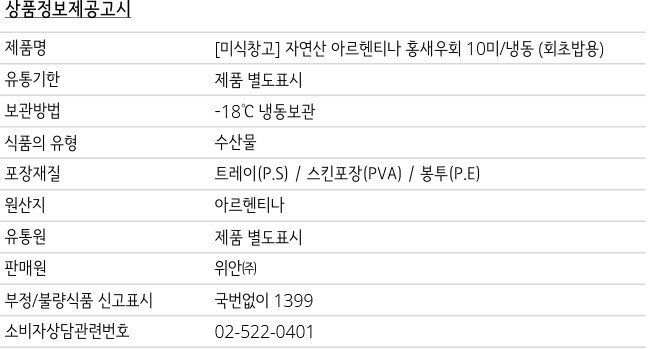 [미식창고] 자연산 아르헨티나 홍새우회 10미(회초밥용)