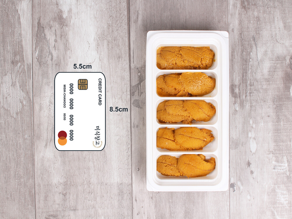 미식창고에서 보내드리는 호주산 냉장성게알은 100g씩 선별하여 전용 케이스에 담아 보내드립니다. 가지고 계신 신용카드나 체크카드 기준으로 크기를 비교해보세요. 현지 생산에 따라 크기는 약간씩 다를 수 있지만 최대한 일정한 냉장성게알을 보내드리도록 하겠습니다.