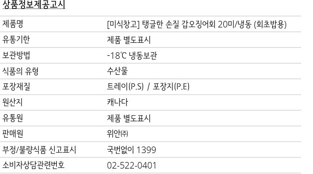 · 회초밥용으로 손질이 깔끔하게 되어있어 먹기 전 바로 해동만 하면 끝!