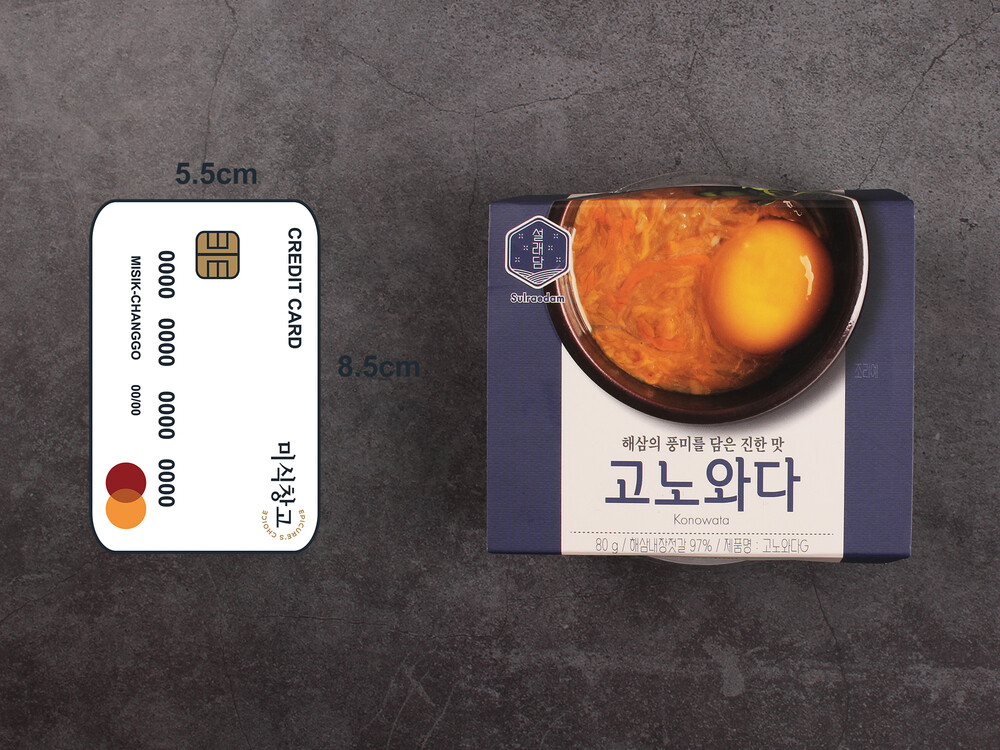 미식창고에서 보내드리는 고노와다 (해삼내장젓갈)는 80g의 중량 패키지로 전달됩니다. 가지고 계신 신용카드나 체크카드 기준으로 크기를 비교해보세요. 급냉시킨 제품으로 수령 후 즉시 그대로 -18℃ 이하 냉동보관 하시기 바랍니다. 냉동상태의 제품을 드시기 1~2시간 전에 미리 꺼내어 5℃ 이하의 냉장실에서 냉장 해동 후 드시는 것을 권장해드립니다. 해동 후 재냉동시 변질의 위험이 있으므로 가급적 해동 및 개봉 후 당일내 섭취하시길 바랍니다. (포장 패키지는 제조사측 사정에 따라 변경될 수 있습니다)