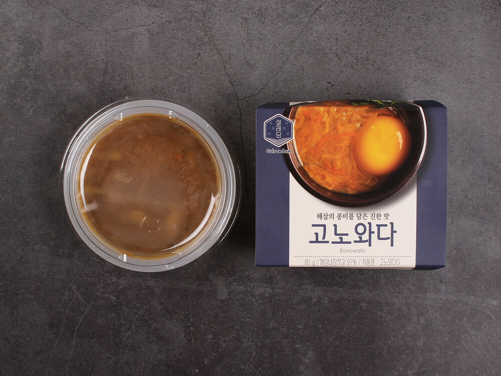 미식창고에서 보내드리는 고노와다는 제철에 잡은 해삼내장을 물기를 빼고 소금만 더해 염장한 젓갈로서, 신선하게 급속냉동했기 때문에 따로 별다른 손질없이 해동만 하면 끝이예요. 밀도가 높은 편이라 해산물 드실 때 양념장처럼 곁들임으로 드시면 좋습니다. 해삼의 풍미를 진하게 담고 있어 특히 흰살 생선회를 찍어드셔도 어울리고, 뜨끈한 밥 위에 고노와다, 김가루, 신선한 채소 등을 얹고 참기름을 빙 둘러 비빔밥으로 만들어드셔도 맛있어요. 또는 좋은 쌀로 만든 초밥세트*를 이용해 초밥 위에 고노와다를 올리고 포슬포슬한 감태*에 감싸서 한 입에 쏙쏙 드셔도 입 안에 착 감기는 맛으로 즐기실 수 있을거예요.