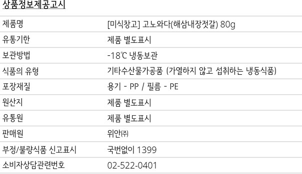 [미식창고] 고노와다 (해삼내장젓갈) 크기 및 상품패키지