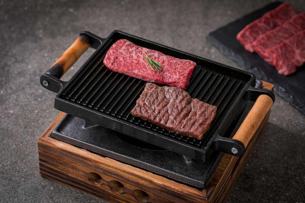 팬 또는 숯불을 충분히 달군 후 약 35초 간격으로 고기를 뒤집어가며 구워주세요. 1분이 지나면 중불로 줄여 기호에 따라 익혀주세요. 양면이 충분히 익어 갈색이 될 때까지 구워주시면 고기맛이 더욱 맛있어지는 마이야르 반응이 일어난답니다. 마늘, 양파, 가지, 버섯 등 원하시는 가니쉬를 함께 조리하면 한층 풍요롭게 즐길 수 있습니다. 고기를 구울 때나 시즈닝할 때, 미식창고가 구성품으로 드리는 로즈마리를 함께 활용하시면 더욱 좋아요.