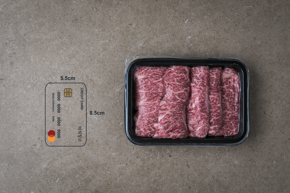 · 투명한 스킨 포장으로 살치살의 눈꽃같은 마블링이 한 눈에 들어온다.