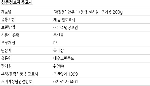[마장동] 한우 1+등급 살치살 구이용 200g