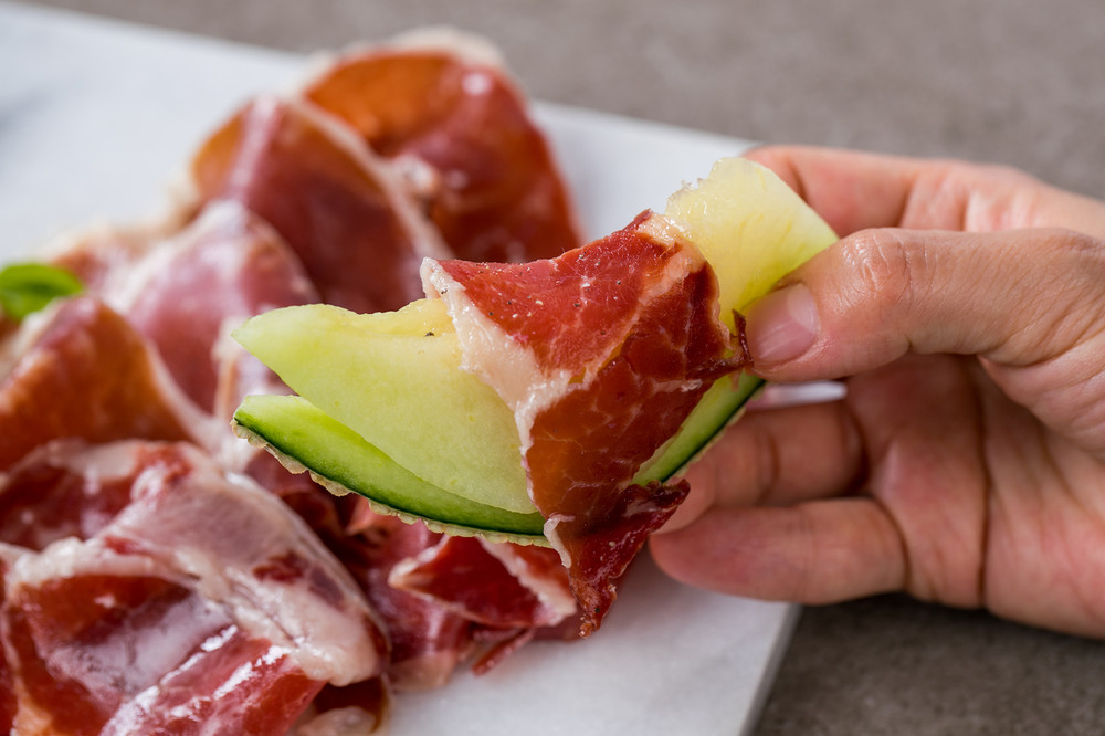 먹기 편하게 슬라이스된 하몽을 메론, 치즈, 크래커, 견과류와 함께 곁들여 드셔보세요. 특히 메론같은 과즙이 풍부하고 단 맛의 과일과 함께 드시게 되면, 하몽의 짭조롬한 맛과 잘 어우러지면서 색다른 맛(단짠단짠)으로 즐기실 수 있을거예요.