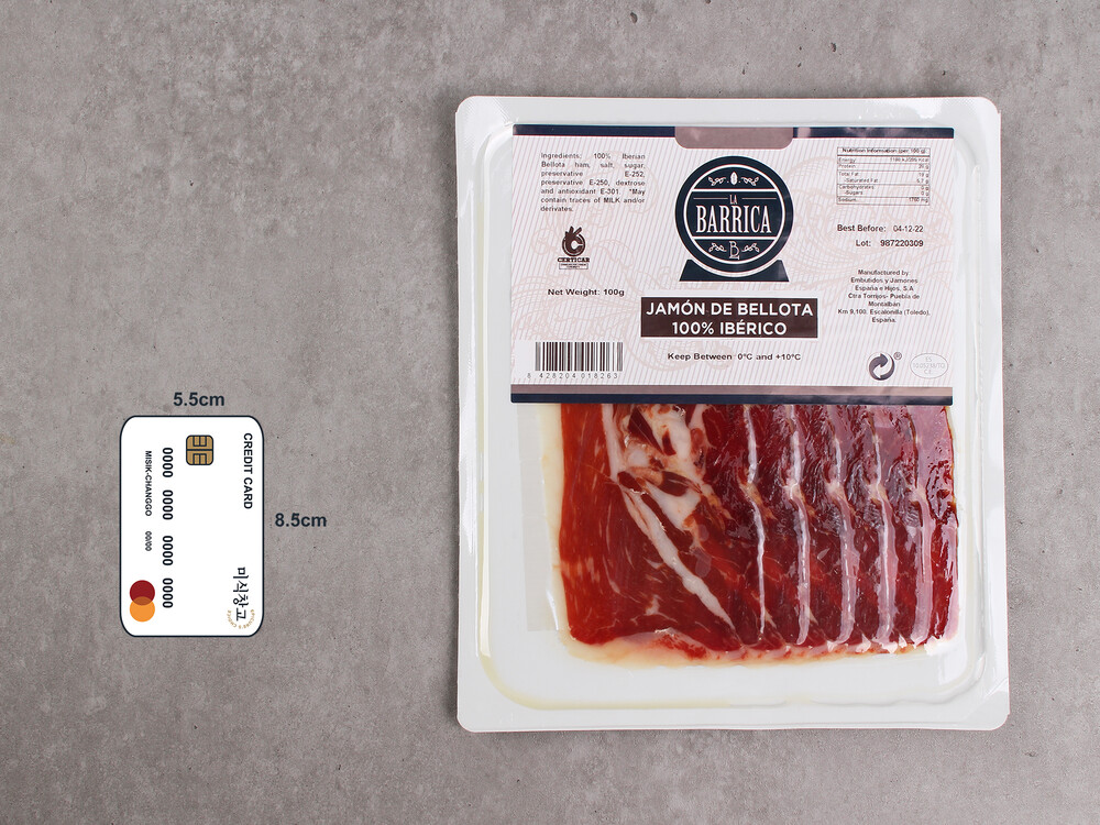 미식창고가 보내드리는 [라 바리카] 하몽 이베리코 베요타 100% 제품 입니다. 해당 제품의 사이즈가 궁금하시다면 가지고 계신 신용카드나 체크카드 기준으로 크기를 비교해보세요.