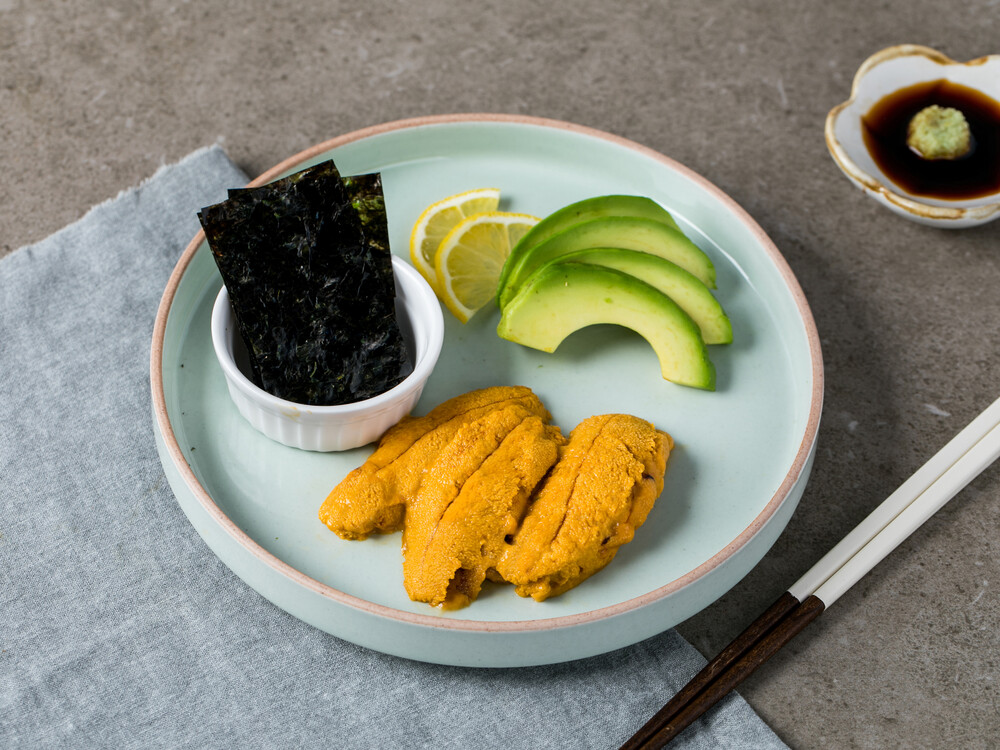 2. 생김이나 감태 위에 아보카도를 얹고 우니를 올려줍니다.