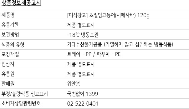 미식창고에서 보내드리는 시메사바는 120g의 중량 패키지로 전달됩니다. 가지고 계신 신용카드나 체크카드 기준으로 크기를 비교해보세요. 급냉시킨 제품으로 수령 후 즉시 그대로 -18℃ 이하 냉동보관 하시기 바랍니다. 냉동상태의 제품을 드시기 1~2시간 전에 미리 꺼내어 5℃ 이하의 냉장실에서 냉장 해동 후 드시는 것을 권장해드립니다. 해동 후 재냉동시 변질의 위험이 있으므로 가급적 해동 및 개봉 후 당일내 섭취하시길 바랍니다. (포장 패키지는 제조사측 사정에 따라 변경될 수 있습니다)
